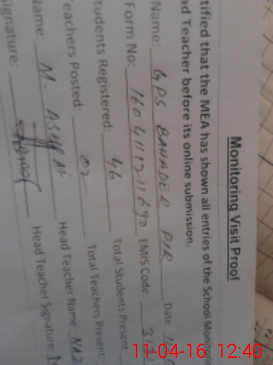 | Certified that this School was Inspected by the Undersigned MEA/DMO Today and the Information Stated Above is as Per Record. | |||||