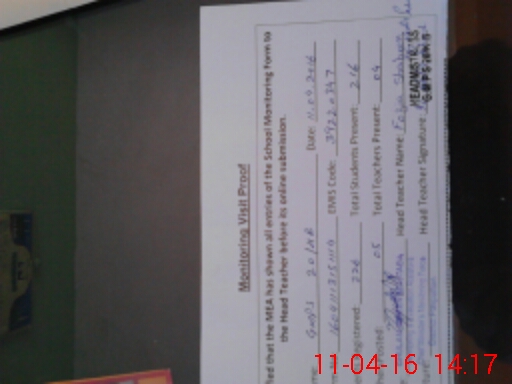 | Attendance Register | Head Teacher | MEA with School | Visit Proof |