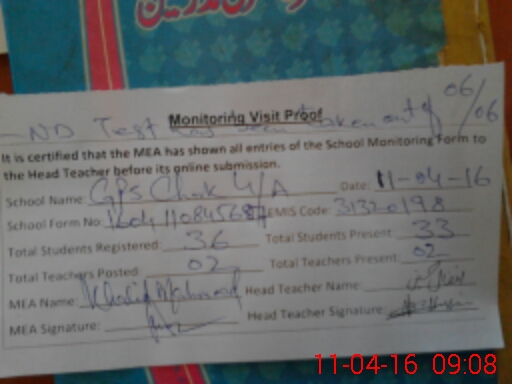 | EMIS Code: 31320198 | Name of School: GPS CHAK 4/A | |||