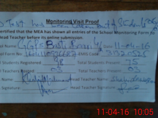| EMIS Code: 31320525 | Name of School: GGPS BASTI BAARI 4/A | |||