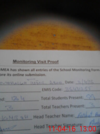 | Attendance Register | Head Teacher | MEA with School | Visit Proof |