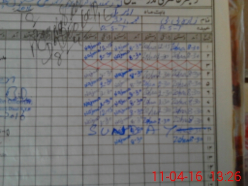 | CNIC | Full Name | Designation | R/C | Absence During Last Calender Month |