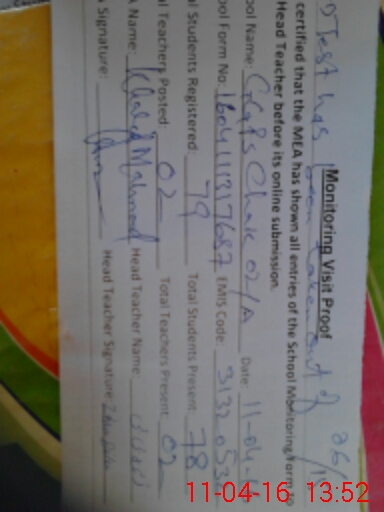 | Attendance Register | Head Teacher | MEA with School | Visit Proof |