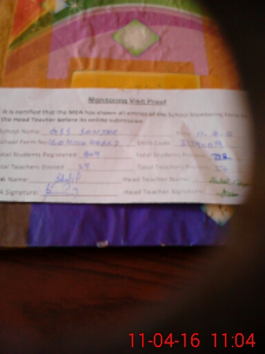| Attendance Register | Head Teacher | MEA with School | Visit Proof |