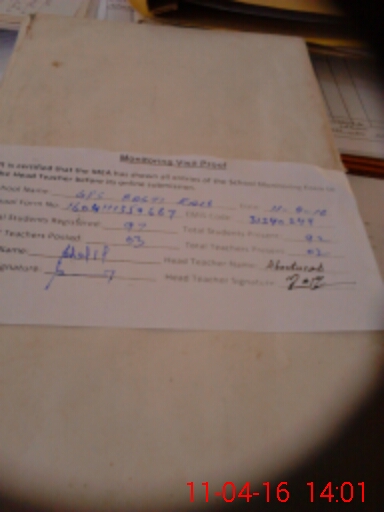 | Attendance Register | Head Teacher | MEA with School | Visit Proof |