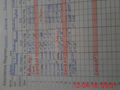 | CNIC | Full Name | Designation | R/C | Absence During Last Calender Month |