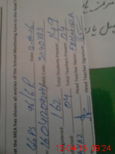 | Name: FE**** KH**** Designation: (School Headmaster's/Headmistress's) PST Phone/Cell Number: 03**** |