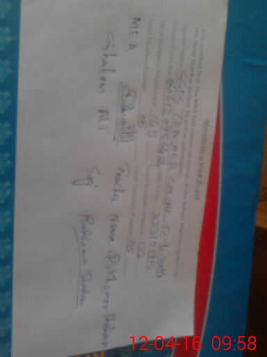 | Monitoring Date: 12-04-2016 | Start Time: 12-04-2016 09:00 AM | End Time: 12-04-2016 09:59 AM | Name of MEA: Gh**** Al**** | |