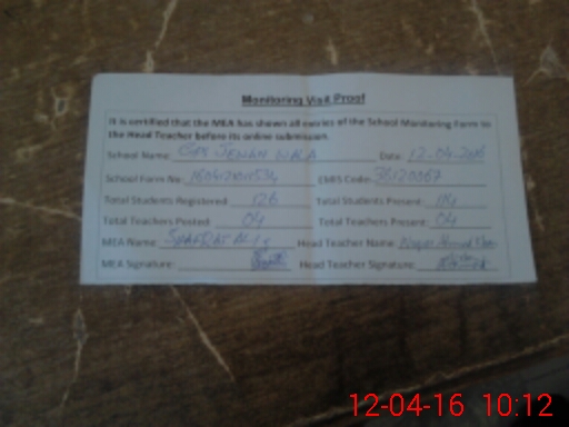 | Certified that this School was Inspected by the Undersigned MEA/DMO Today and the Information Stated Above is as Per Record. | |||||