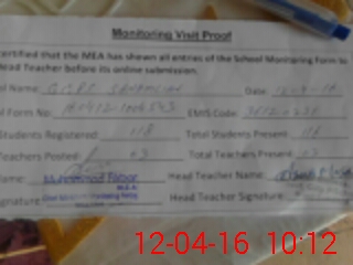 | Attendance Register | Head Teacher | MEA with School | Visit Proof |