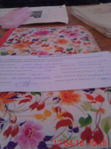 | Attendance Register | Head Teacher | MEA with School | Visit Proof |