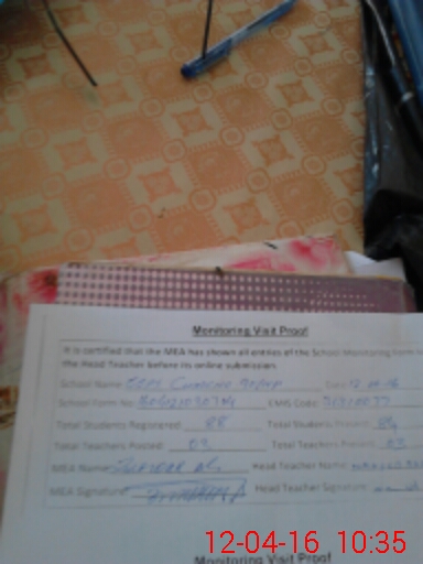 | Attendance Register | Head Teacher | MEA with School | Visit Proof |
