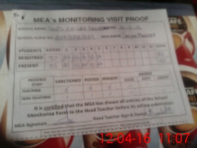 | Attendance Register | Head Teacher | MEA with School | Visit Proof |