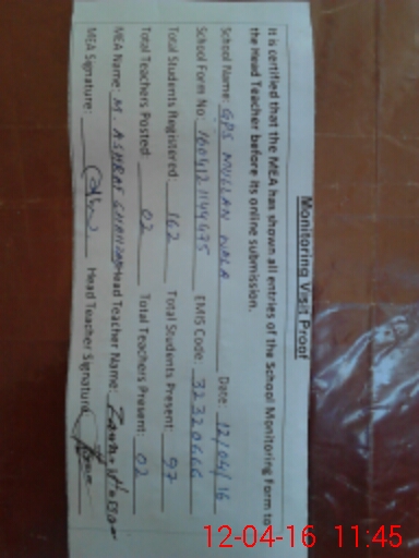 | EMIS Code: 32320666 | Name of School: GPS MULLAN WALA | |||