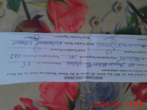 | List of Eligible Students for Receipt of Stipend (Displayed on School Notice Board): | |