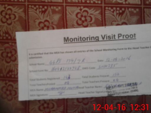 | Attendance Register | Head Teacher | MEA with School | Visit Proof |