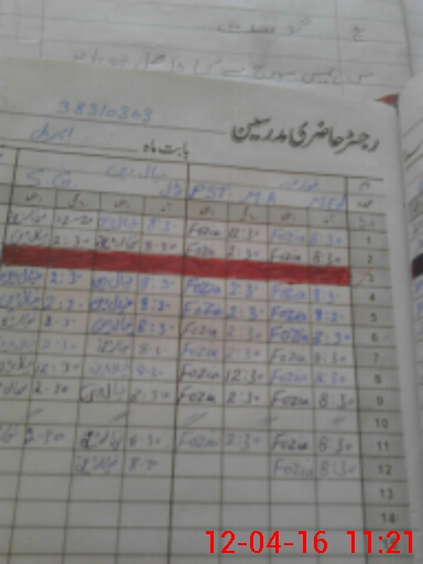 | CNIC | Full Name | Designation | R/C | Absence During Last Calender Month |