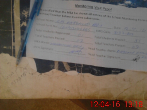 | Attendance Register | Head Teacher | MEA with School | Visit Proof |