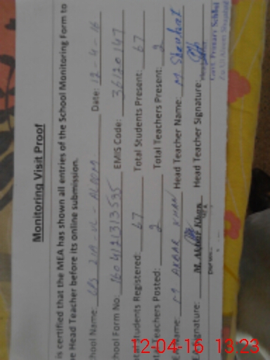 | Attendance Register | Head Teacher | MEA with School | Visit Proof |