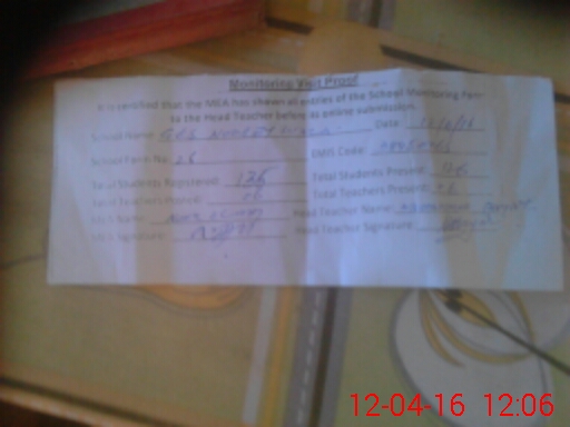 | Attendance Register | Head Teacher | MEA with School | Visit Proof |