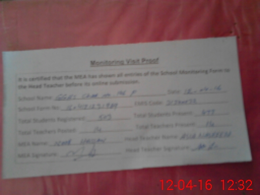 | EMIS Code: 31340032 | Name of School: GGHS CHAK NO. 146/P | |||