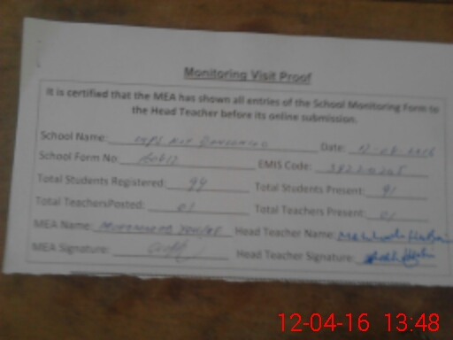 | Certified that this School was Inspected by the Undersigned MEA/DMO Today and the Information Stated Above is as Per Record. | |||||