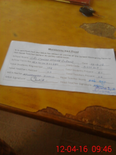 | Attendance Register | Head Teacher | MEA with School | Visit Proof |