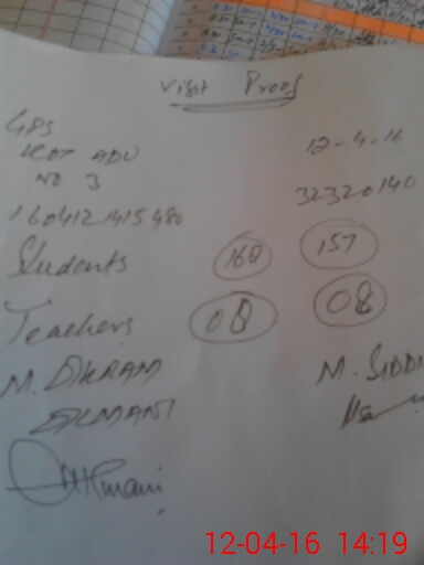 | Attendance Register | Head Teacher | MEA with School | Visit Proof |