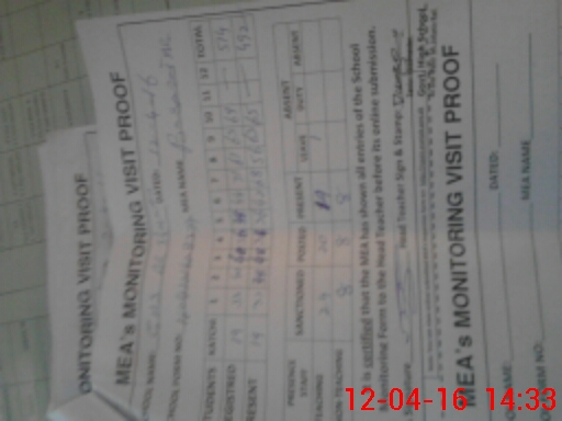 | Attendance Register | Head Teacher | MEA with School | Visit Proof |