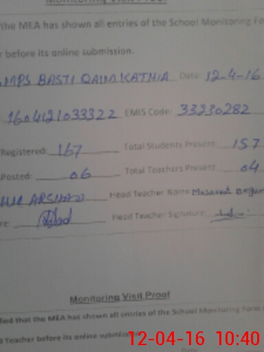 | EMIS Code: 33230282 | Name of School: GPS QAIM KATHIA | |||