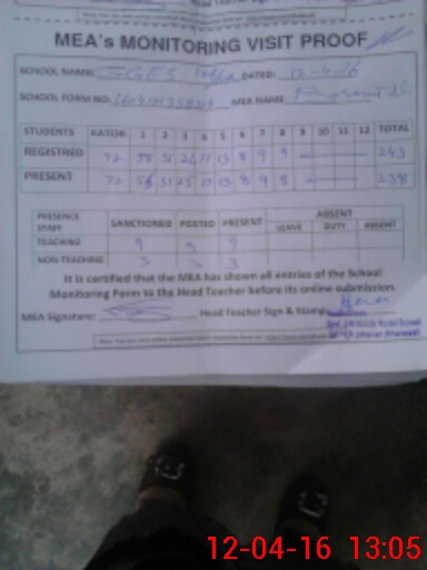 | Attendance Register | Head Teacher | MEA with School | Visit Proof |
