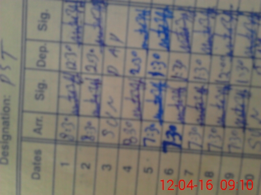 | CNIC | Full Name | Designation | R/C | Absence During Last Calender Month |
