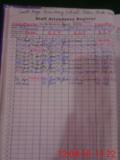 | CNIC | Full Name | Designation | R/C | Absence During Last Calender Month |