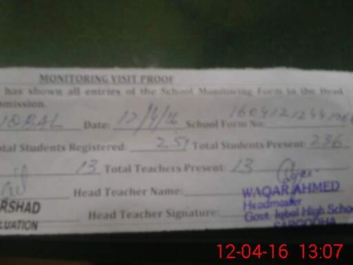 | EMIS Code: 38420030 | Name of School: GHS IQBAL NEW CIVIL LINE SARGODHA | |||