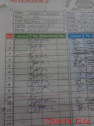 | CNIC | Full Name | Designation | R/C | Absence During Last Calender Month |