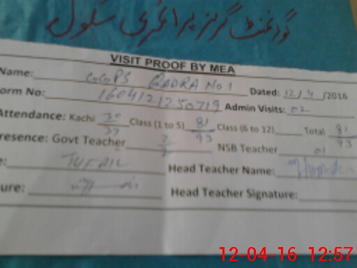 | Attendance Register | Head Teacher | MEA with School | Visit Proof |
