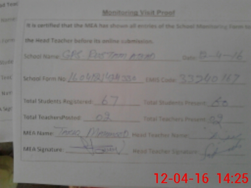 | EMIS Code: 33240167 | Name of School: GPS RUSTAM ABAD | |||