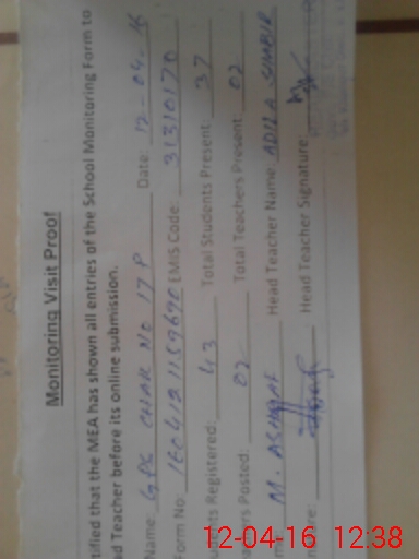 | EMIS Code: 31310170 | Name of School: GPS CHAK NO 17/P KHANPUR | |||