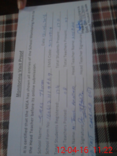 | Certified that this School was Inspected by the Undersigned MEA/DMO Today and the Information Stated Above is as Per Record. | |||||
