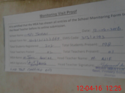 | EMIS Code: 31310193 | Name of School: GPS JHORAN | |||
