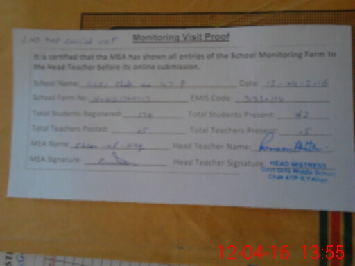 | Certified that this School was Inspected by the Undersigned MEA/DMO Today and the Information Stated Above is as Per Record. | |||||