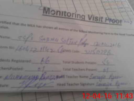 | EMIS Code: 31150296 | Name of School: GGPS SADHU SULTAN PURA | |||