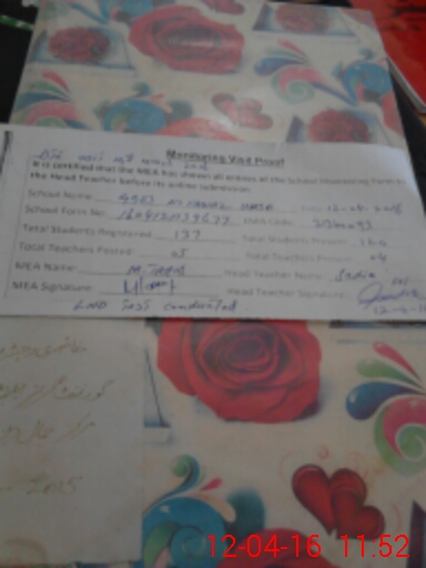 | Attendance Register | Head Teacher | MEA with School | Visit Proof |