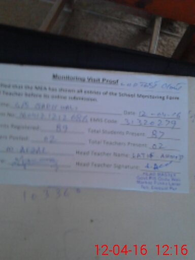 | EMIS Code: 31320279 | Name of School: GPS QADU WALI (MOUDIB) | |||