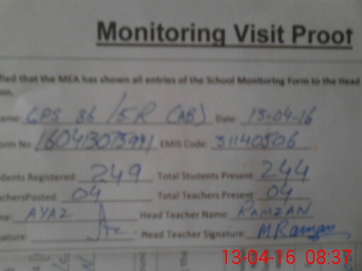 | Attendance Register | Head Teacher | MEA with School | Visit Proof |