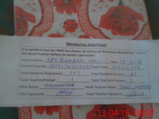 | EMIS Code: 32320213 | Name of School: GPS BHEDAN WALI | |||