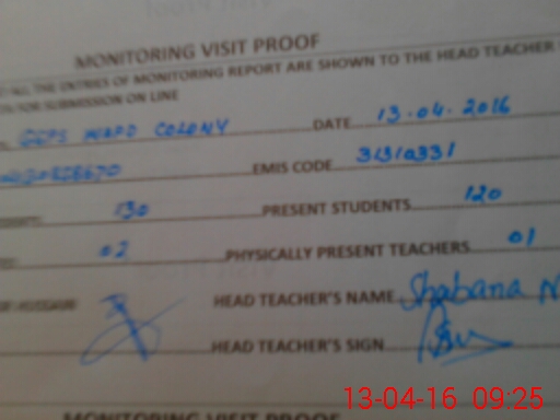 | EMIS Code: 31310331 | Name of School: GGPS WAPDA COLONY (After Noon) | |||