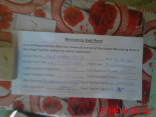 | Certified that this School was Inspected by the Undersigned MEA/DMO Today and the Information Stated Above is as Per Record. | |||||