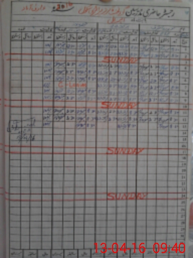 | CNIC | Full Name | Designation | R/C | Absence During Last Calender Month |