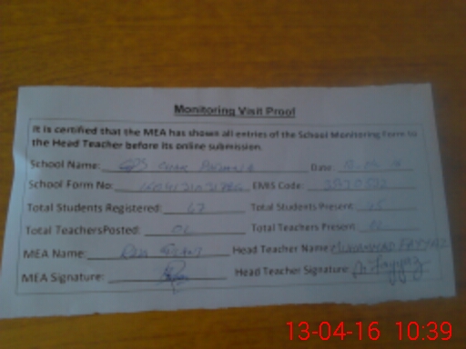 | Certified that this School was Inspected by the Undersigned MEA/DMO Today and the Information Stated Above is as Per Record. | |||||